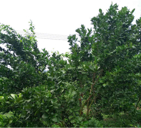澇害已使部分柑橘根系受損,而之后的連續高溫根系在未恢復情況下再受重創,肥水吸收能力大幅下滑。葉片偏少黃弱,樹體累積的有機養分相對較少,難以供給果實膨大、梢枝生長所需,導致膨果慢、果小。
