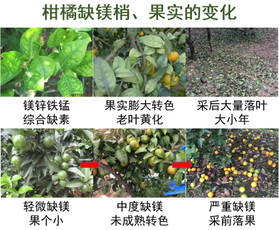 大多數果樹對鎂的需求量和對磷的需求量幾乎相差不大。以柑橘為例: