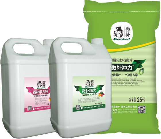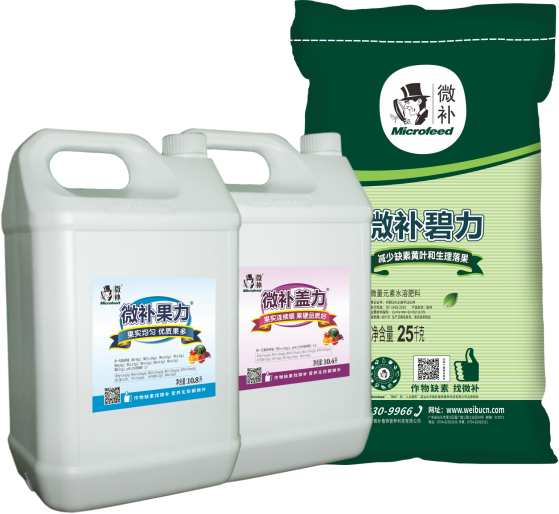 02 需鎂量大的時期,已經出現缺鎂癥狀的果園,微補根力鈣5公斤/畝+微補精力2公斤/畝+微補沖力鎂1公斤/畝,沖施、滴灌,營養元素平衡,補鈣鎂,促根保樹,預防減少多種缺素黃葉,減少落果。