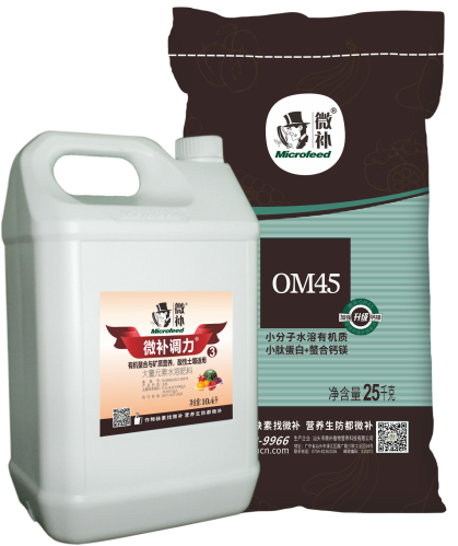 針對天氣持續高溫干旱,造成普遍果個小的問題,如何解決? 01 合理的承載量,避免留果太多 一棵果樹所提供的營養是有限的,留果過多,消耗樹體過多的營養,造成樹勢衰落,損害柑橘樹勢。留果多果實相互擁擠著,影響果實的正常膨大,果實都不長個,果實整體偏小,品質不高。 02 保持合理、均勻的補水措施 土壤中含水量過小,天氣過于干旱,植株根系難以吸收足夠的水分、養分支持葉、梢、果對水分、養分的需要。在比較干燥和溫度較高的的情況下,3-5天淋水一次,及時的補充樹體生長所必需的水份,同時有利于根系對水份和養分的吸收。 03 可結合澆水的時候,選擇速效水溶肥,快速補充樹體養分。 溫度太高,加上天氣干旱,水分不足,施用大肥時無法充分溶解肥料,導致濃度高,產生燒根問題。天氣干旱淋水肥,建議用微補調力+微補OM45,速效調理土壤,改善根際環境,高效補充磷鉀,有機營養和磷鉀快速吸收上來,既膨大了果實,又保住了樹勢,還調理了土壤,一舉三得,輕松讓果樹度過高溫干旱期。 04 通過葉面噴施高磷鉀鈣鎂等葉面肥 磷鉀鈣能促進果實的光合作用,促進碳水化合物的代謝和合成,促進有機產物的積累,還能促進果實膨大,提高糖量,噴施微補碧力+微補壯力+微補蓋力,膨果壯梢優果方案,補充根系吸收養分的不足,促進膨果,增加單果果重。