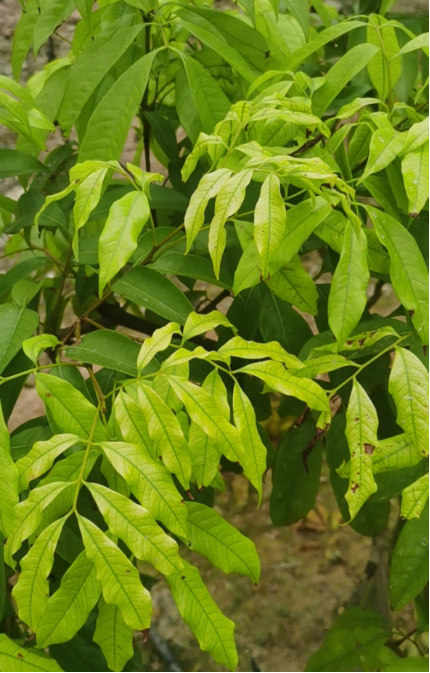 01 一是要讓梢健壯而不過旺,同時避免冬梢的抽生。在秋梢生長期或生長后期過量追肥,尤其是氮肥,易導致末次梢長勢較強,頂芽活躍,容易抽生冬梢,消耗樹體營養,荔枝難成花或成花枝條少,開花保果難。 桂味沖梢 02 二是要讓秋梢轉綠快。除了氮磷鉀外,鎂、鋅、硼、鈣、鐵、錳對促進新梢老熟也很重要,缺鈣梢和根系都不健壯,缺鎂梢老熟慢,缺鋅易小葉花葉,缺鐵新葉發白。 缺鐵 03 三是補充花芽分化所需的鋅硼營養。荔枝枝梢成花首先需要枝梢成熟生長,并達到具備接受成花誘導能力,其次是接受低溫誘導后頂端芽成為花芽,在這期間鋅和硼要用于秋梢抽發成熟,等到冬季再來補充肯定是來不及的。 弱花畸形花穗 建議: