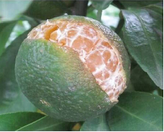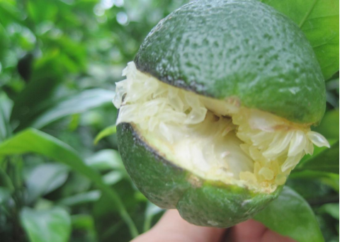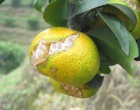 裂果的直觀原因是:膨果期柑橘果肉細胞生長速度過快,超過了果皮細胞生長速度,把果皮撐破。