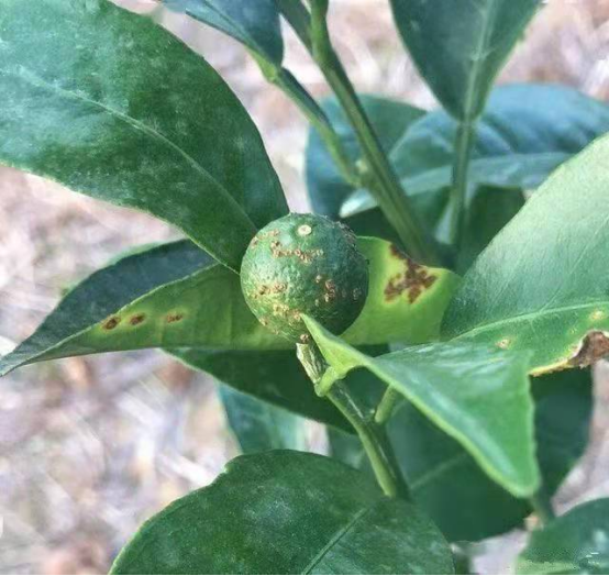 未成熟的青果病斑周圍有黃色暈環,果實成熟后暈環消失。潰瘍病一般會侵染幼果,果實成熟后病斑也不會消失,影響果實的品質,成為花皮果,商品價值低。