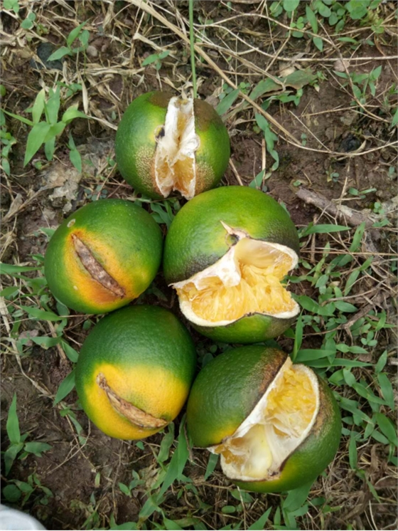 后期甚至會造成果臍以及臍柱出現(xiàn)黑腐。受害果實切開后還會發(fā)現(xiàn)部分果皮增厚僵硬。